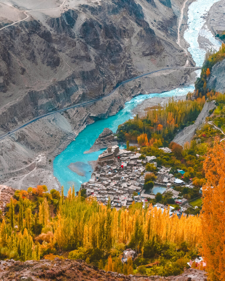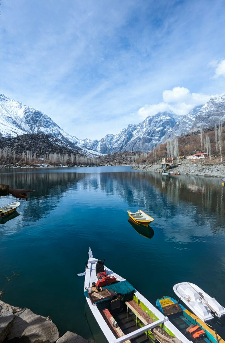 Mountain town surrounded by turquoise lakes, vast deserts, and towering peaks at the heart of northern Pakistan.